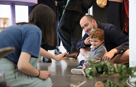 Nous y avons successivement proposé cinq plats à ne déguster qu’avec le nez. Les fresques que Marine enduisait sur nos sculptures captaient les traces de mes gestes et leurs odeurs. Pendant que les fumées et les vapeurs se dispersaient dans l’espace, les spectateurices se passaient de mains en nez des compositions d’aromates et de mets à l'aide des sentoirs et autres objets transmissibles.
